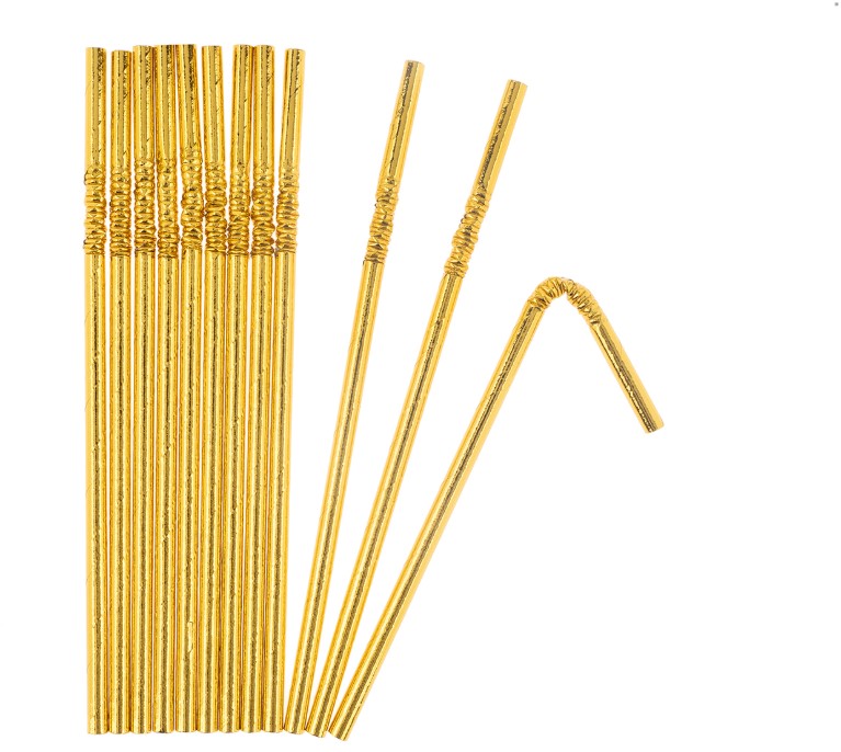 —Трубочки для коктейлей, с гофрой, Золото, Металлик, 12 шт. в упак, 6233633н-й