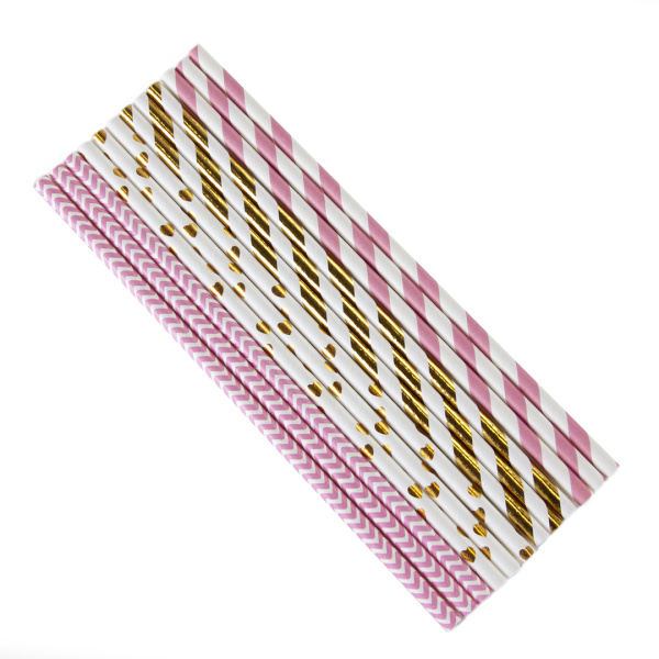 Трубочки для коктейлей, Розовый микс, Розовый;Белый;Золото, металлик, (12 шт;уп), 6231314