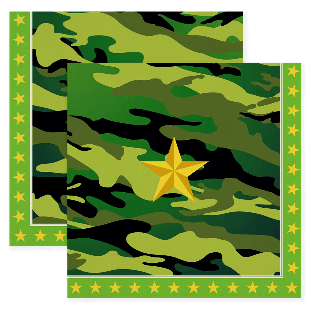 —Сервировочные салфетки, Звездный Камуфляж, Темно-зеленый, 33х33 см, 20 шт, 6231456