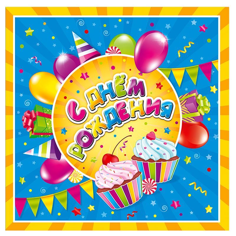 Салфетка Веселуха 'С днём рождения' 33 см., 12 шт.;уп., европодвес, 703007