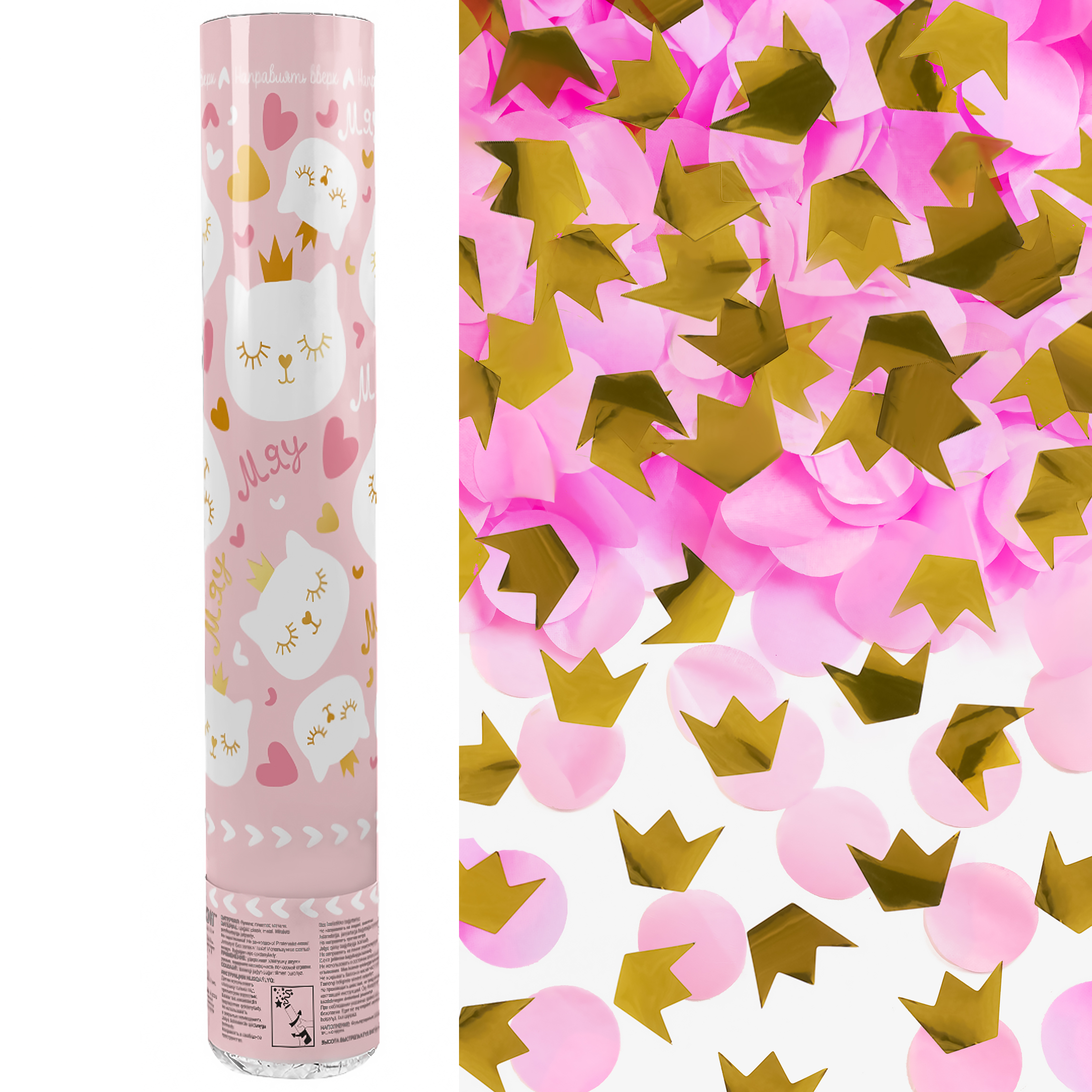 —Пневмохлопушка 12';30 см, Котенок принцесса Короны, розовый, золото, металлик 723033