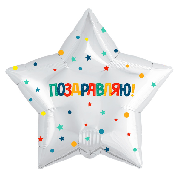 —Шар фольга Agura (21'';53 см) Звезда, Поздравляю! (разн. конфетти и звездочки), Белый, 1 шт.753651