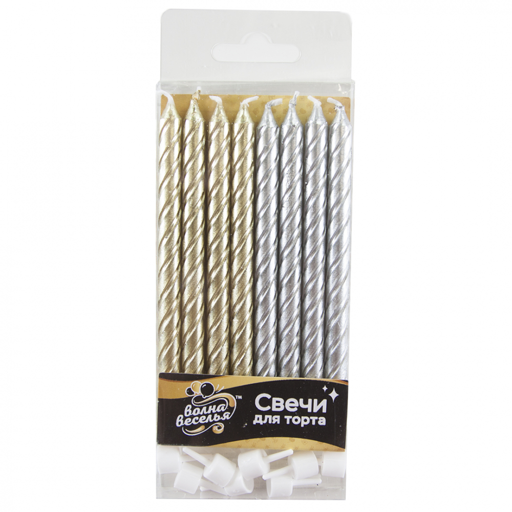 —Набор свечей, Волна Веселья, Серебро;Золото, (8 шт;уп), 802724