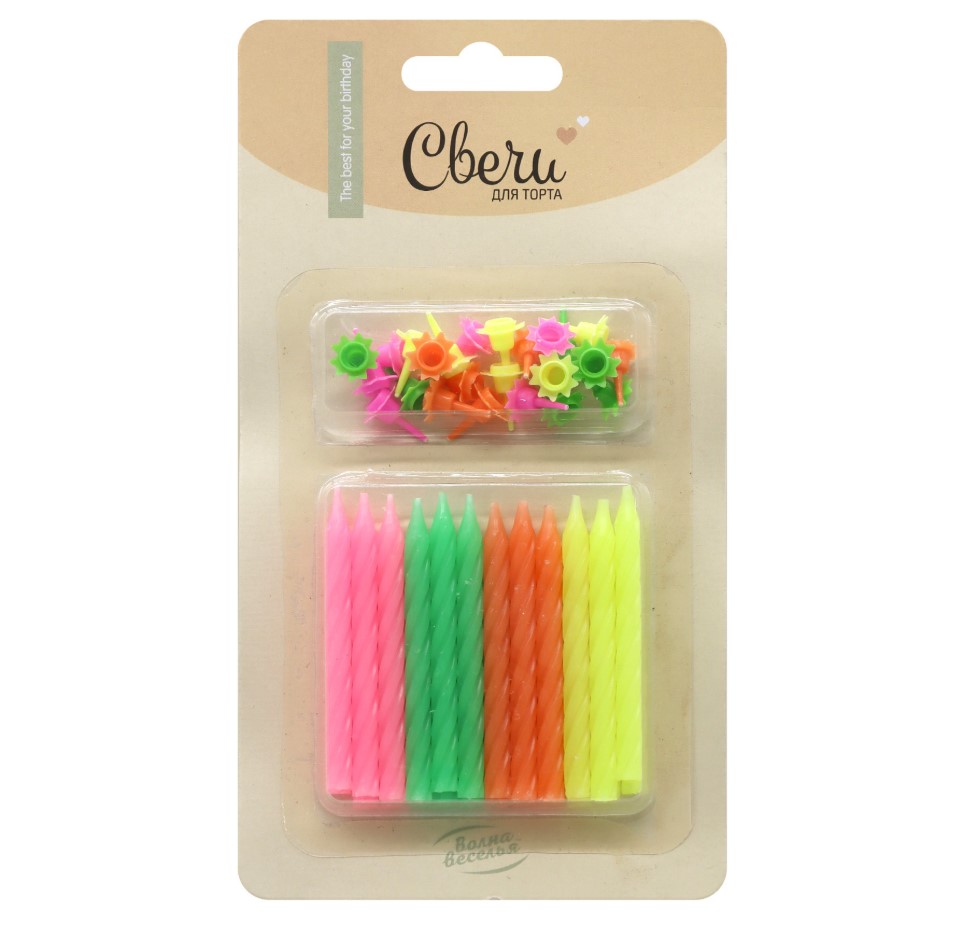 Свечи Сочный микс, Ассорти, 0,5х6 см, 24 шт. с держат, 802916