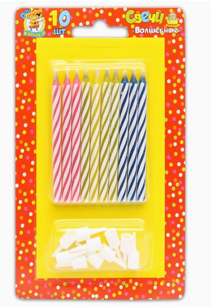—Свечи для торта с подставками Miland "Незатухаемые" 10 шт картон. уп. европодвес, С-1251