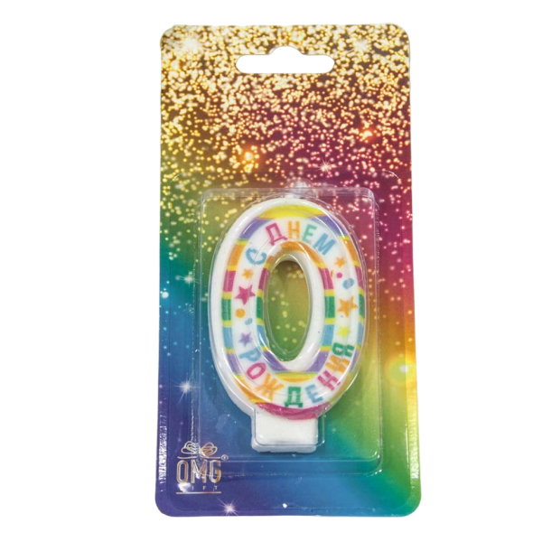 Свеча для торта 'Цифра 0', С днём рождения, 6 см, картон. уп., европодвес, ОМ-20010-29;0