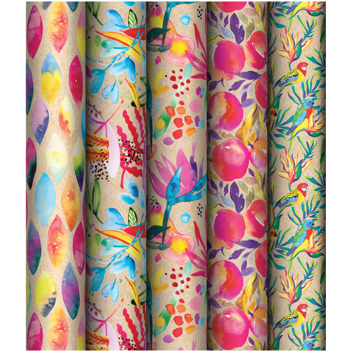 Упаковочная бумага крафт 70х100 см, MESHU 'Акварельные штрихи', 70г;м2, ассорти 5 дизайнов, MS_53478