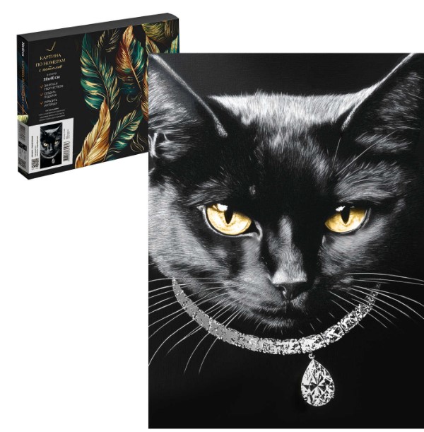 —Картина по номерам с поталью КОШКА С ОЖЕРЕЛЬЕМ, 30х40 см, 17 цветов, 71282