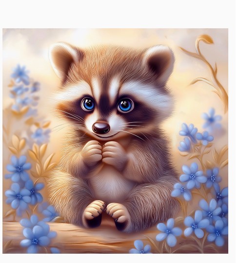 —Холст с красками 20х20 см, Голубоглазый енотик, Х-0739