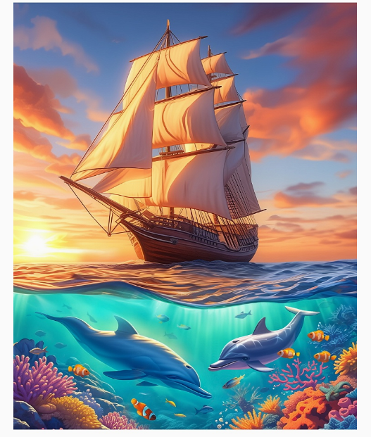 Холст с красками . 40х50 см. Океан на закате. арт.Х-5204