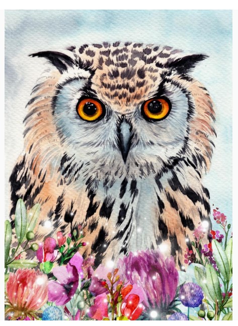 —Алмазная мозайка 'Филин в цветах' (класс.) 22х32 см, с подрамником 24 цвета, НД-0824