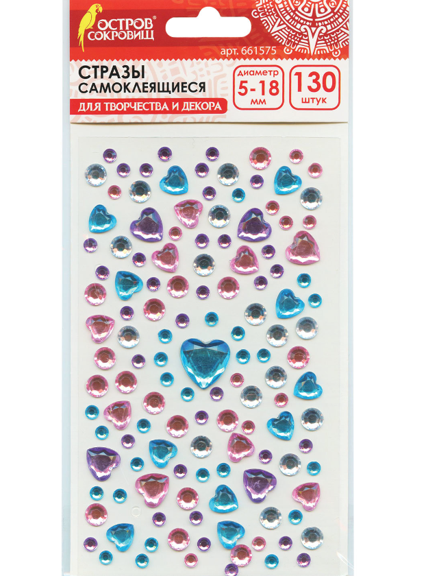 Стразы самоклеящиеся 'Сердечки', 5-18 мм , 130 шт , ассорти, 661575